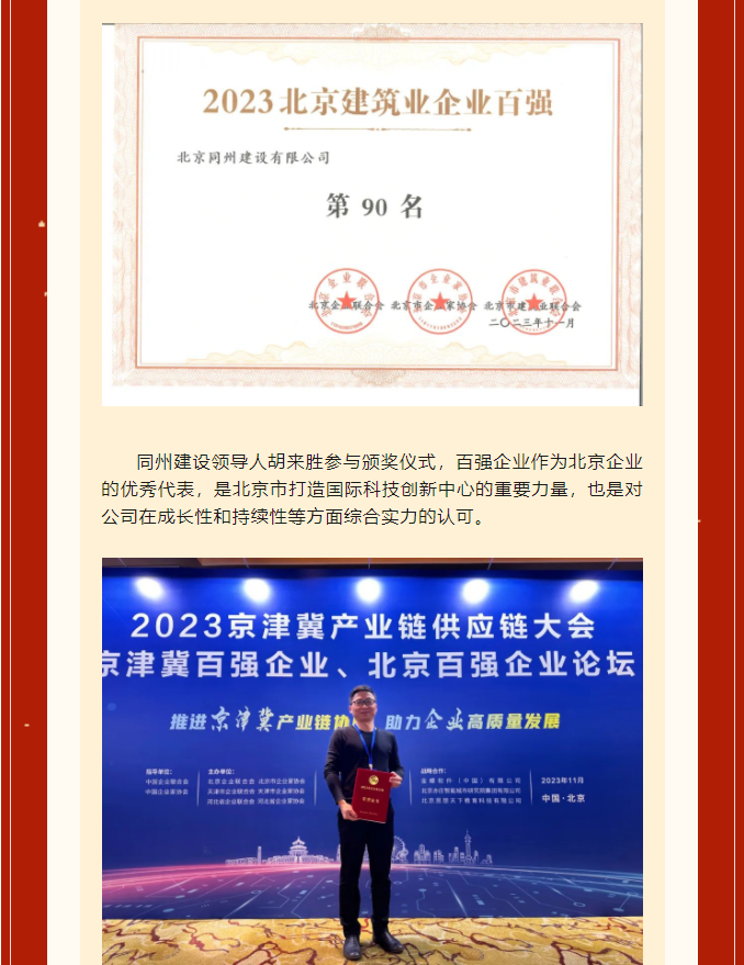同州建設|獲評入選2023北京建筑業(yè)企業(yè)百強榜單
